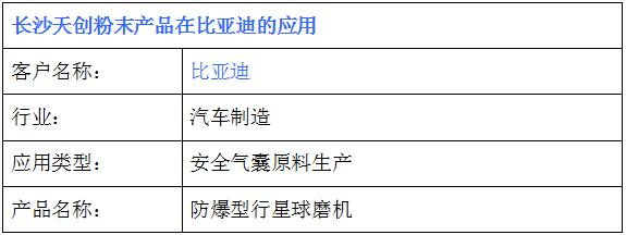 摘要:比亞迪在長沙天創粉末采購一臺防爆型行星式球磨機,用于安全氣囊原料生產。