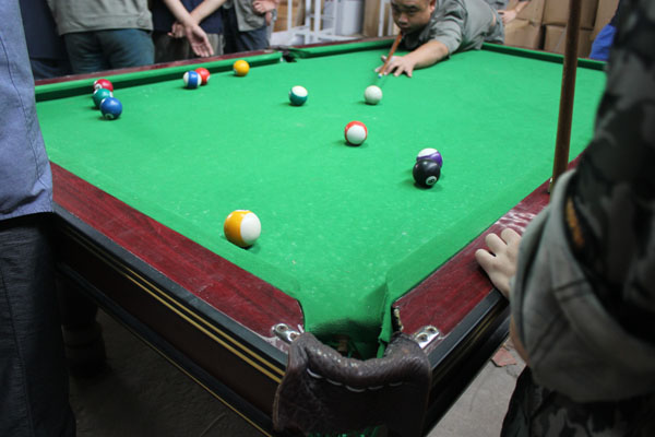 此次臺球比賽共有21人參加,圖為行星球磨機制造組小焦