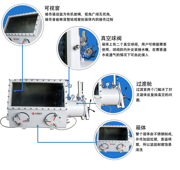 三、天創(chuàng)粉末不銹鋼真空手套箱特點